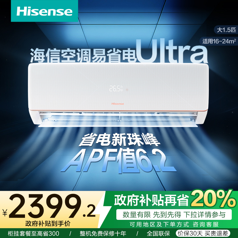海信大1.5匹易省电Ultra空调家用卧室挂机式一级能效以旧换新