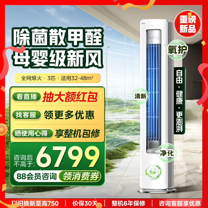 25年新品美的全面风空调官方正品家用3匹客厅立式柜机风尊二代
