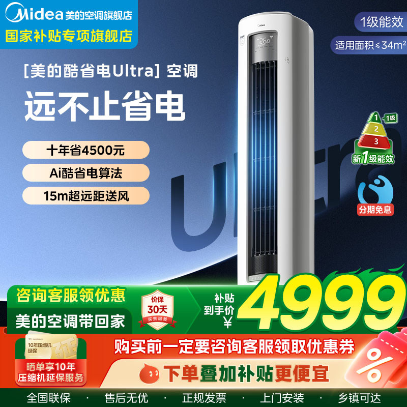 美的空调新一级省电节能2匹立式柜机家用客厅变频冷暖酷省电Ultr
