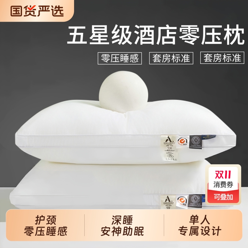 全棉枕头护颈椎助睡眠抗菌防螨单人可水洗枕芯低枕学生宿舍不塌陷