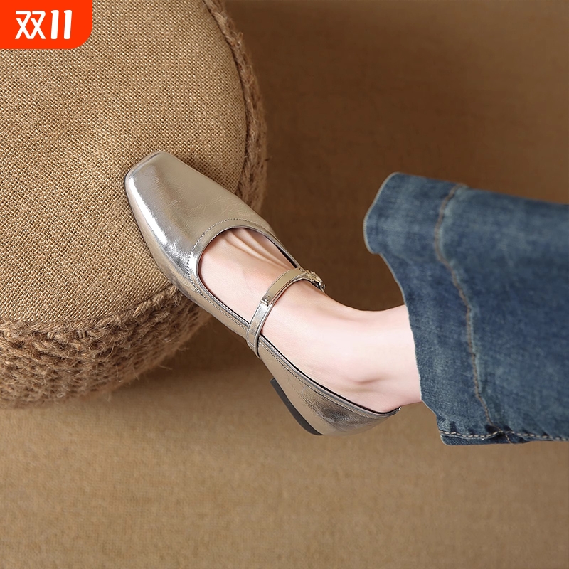 法式银色单鞋女夏2025新款配裙子绝美不累脚低跟平底玛丽珍小皮鞋