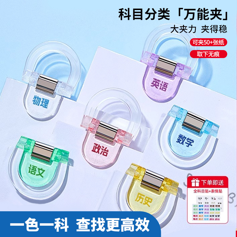 猫太子分科目多功能夹子彩色书夹多色贴纸透明高颜值试卷夹科目夹创意