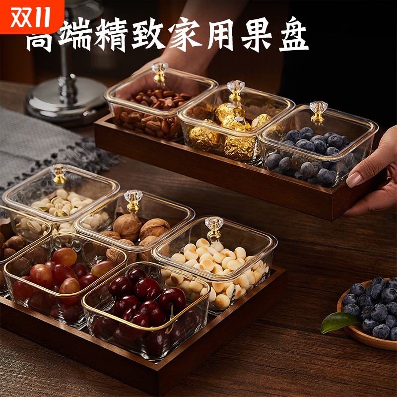 水果盘客厅家用玻璃茶几零食干果坚小吃碟收纳盒分格高颜值精致