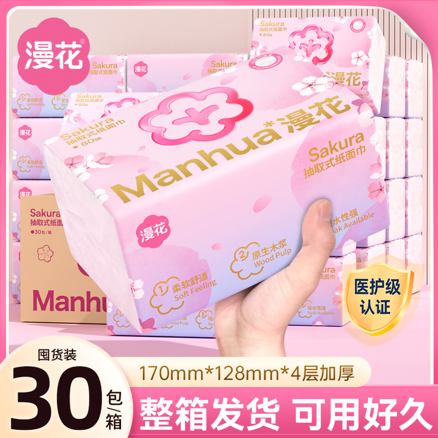 漫花樱花原生木浆大包家用柔韧亲肤品质升级实惠超值可擦手推荐