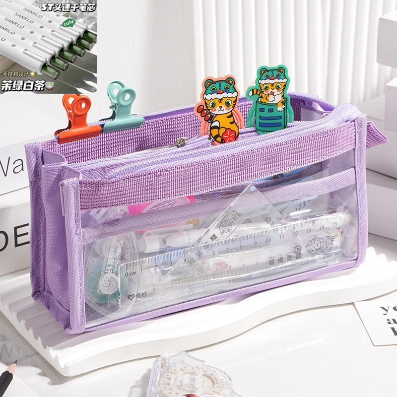 笔袋透明网纱学生考试专用文具袋儿童铅笔袋升级双层立体大容量文具盒