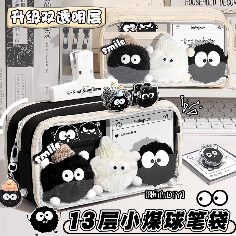 升级13层~小煤球大容量笔袋女生2025新款超火高颜值ins风文