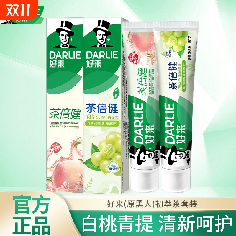 原黑人茶牙膏白桃青提味清新护龈家庭装口臭异味牙龈牙齿健康清洁