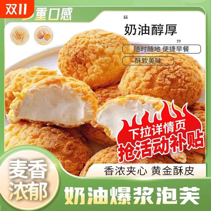 爆浆泡芙冰淇淋营养早餐面包夹心糕点蛋糕零食奶油批发健康美味