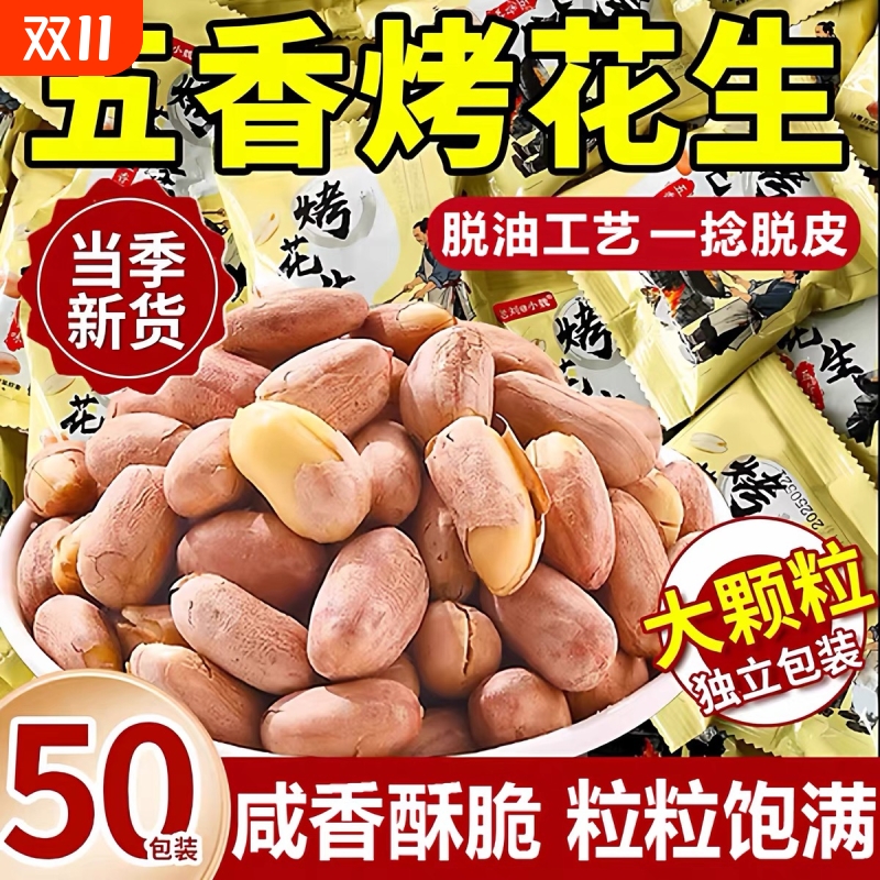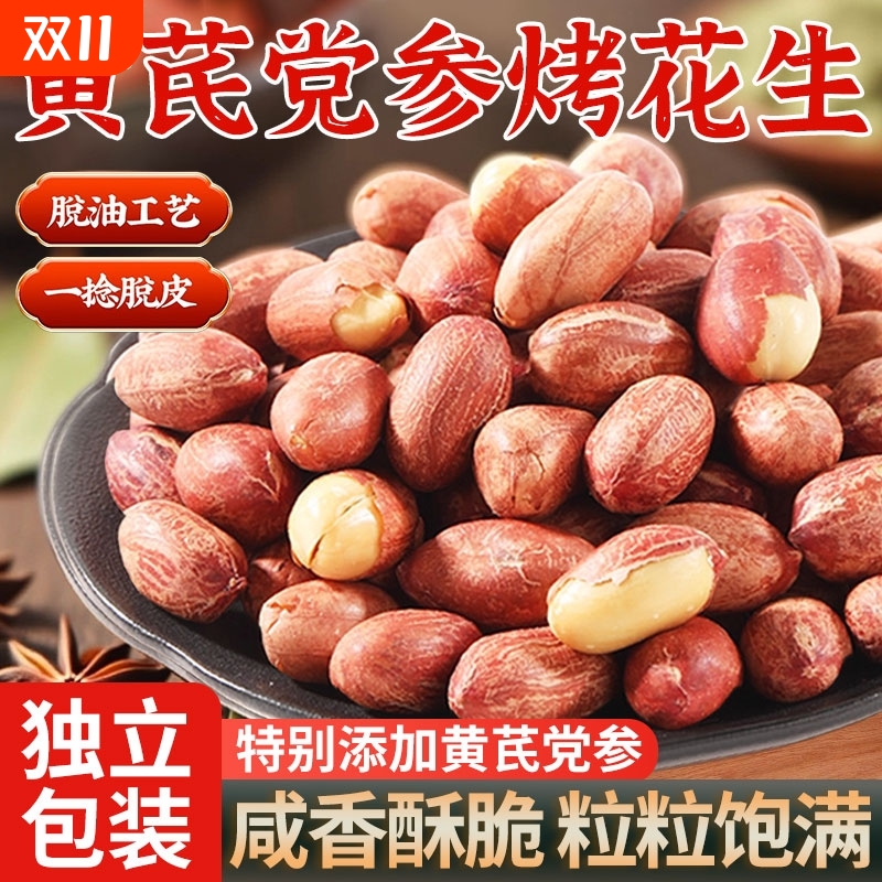 正宗五香黄芪党参烤花生米下酒菜红皮脱油花生即食休闲零食小包装