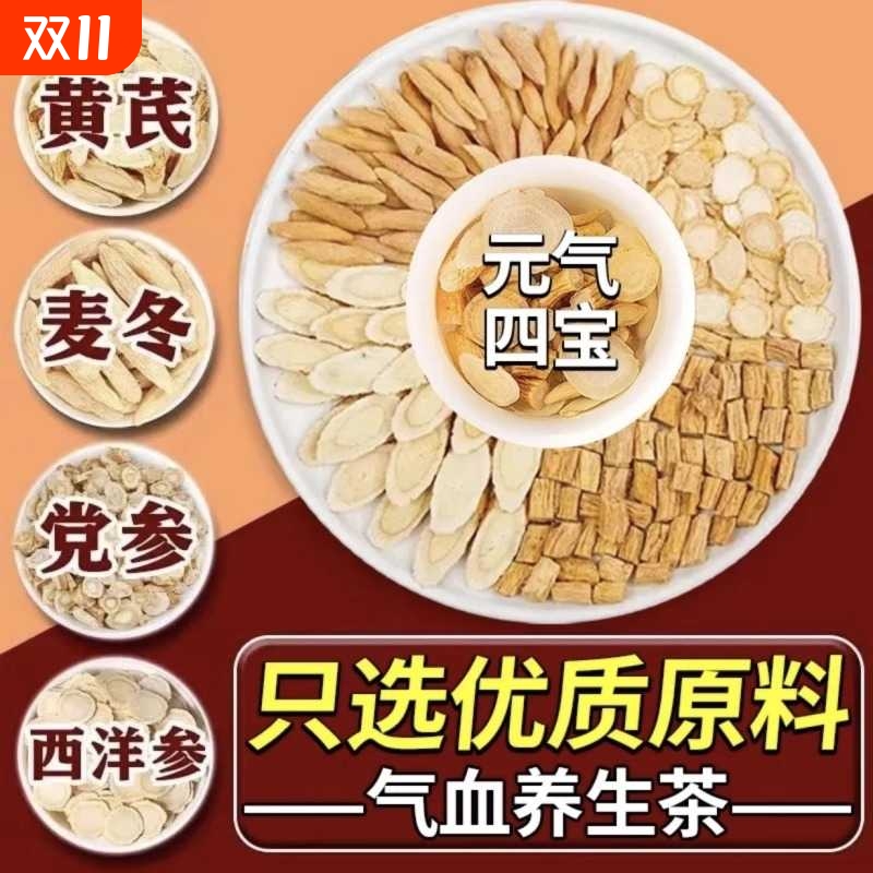 元气四宝茶正品党参黄芪西洋参麦冬男女士补元气养生茶独立泡茶包