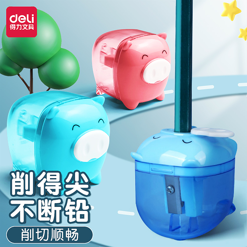 得力珍宝猪卷笔刀小巧便携小学生卡通动物削笔器铅笔刀迷你猪猪