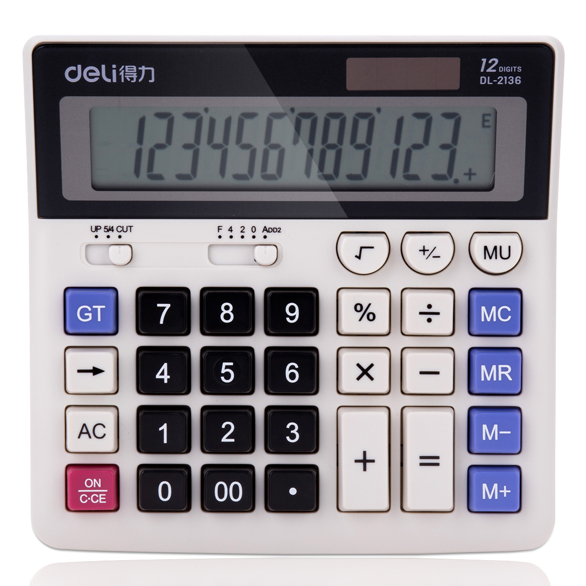 得力财务计算器太阳能双电源四舍五入键大按键会计专用12位计算机
