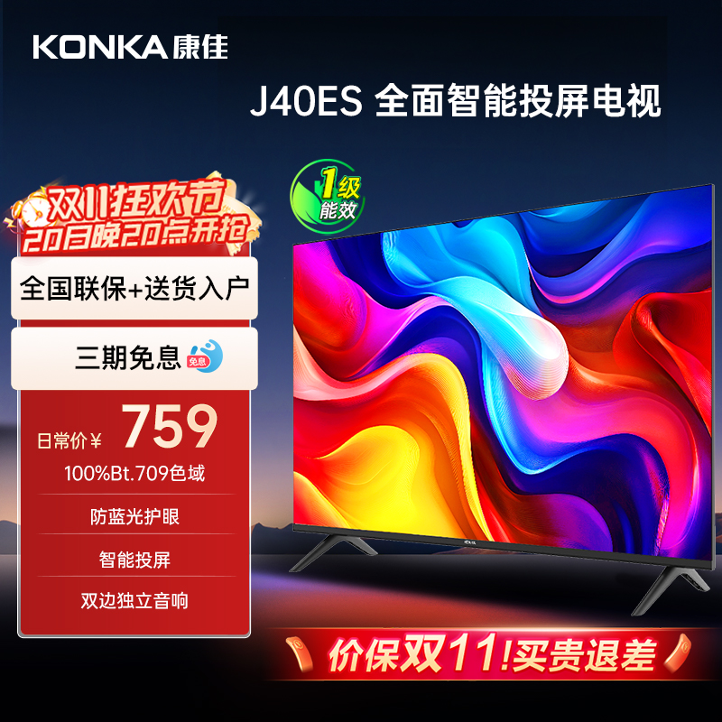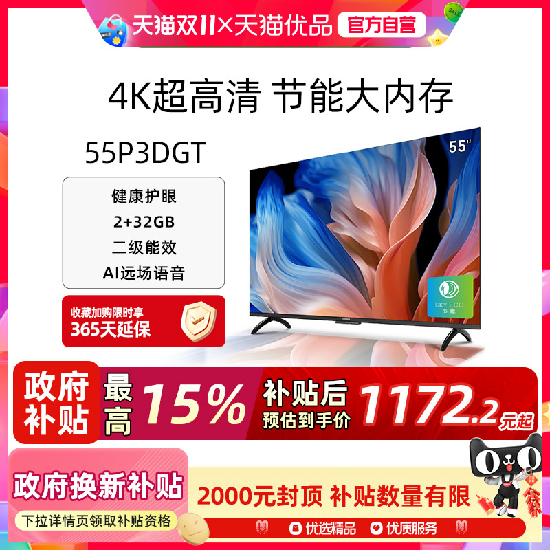 创维酷开K3节能款 55英寸全面屏4K超高清节能大内存电视机55