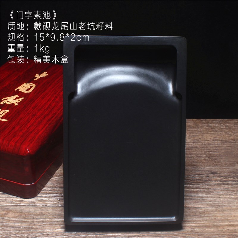 精品歙砚 门字素池 原石老坑籽料素池砚台兼端砚收藏实用小楷文房