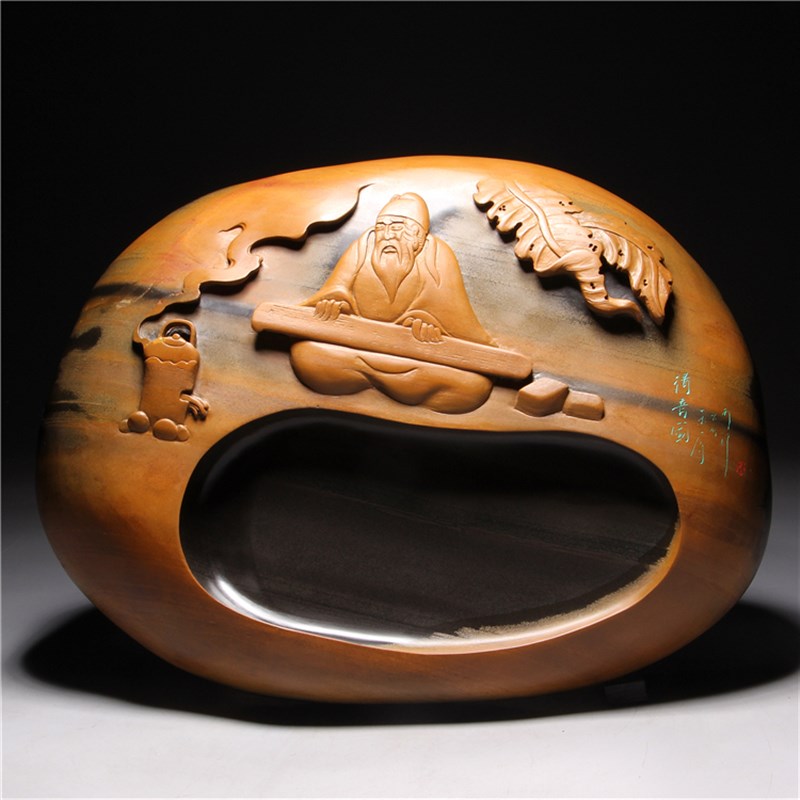 精品歙砚老坑砚台/悠然自得/龙尾砚天然原石砚台兼U端砚文房四宝