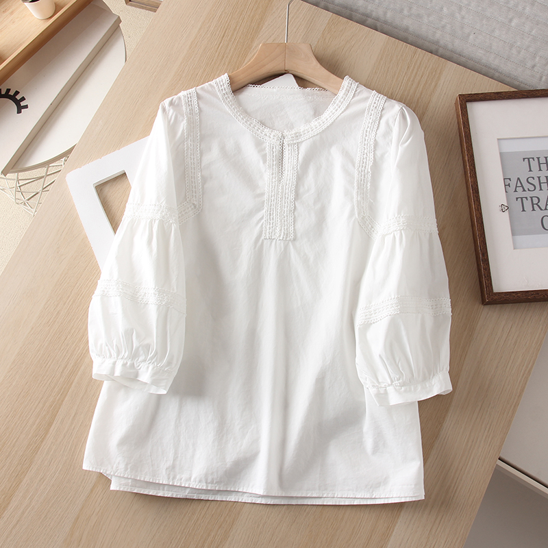23区SLOW系列时尚气质设计MVS棉质交叉领5分袖T恤女ONW