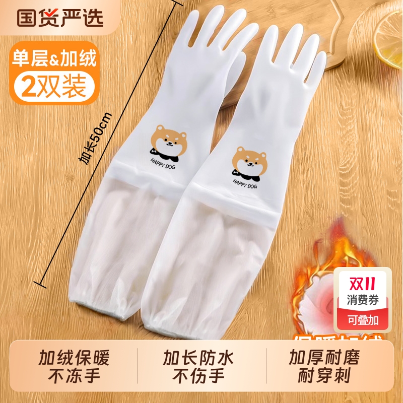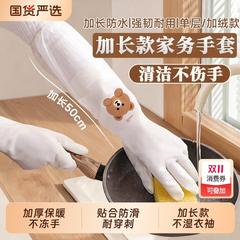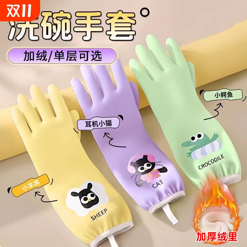手套家务洗碗厨房耐用女加厚加绒橡胶防水专用清洁加长洗衣服冬天