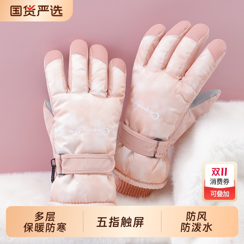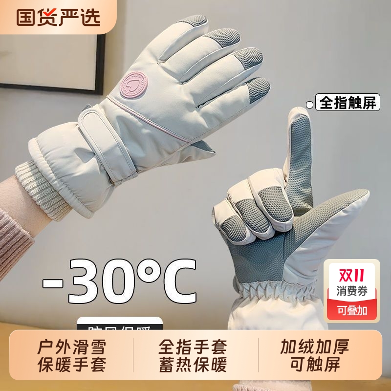 冬季滑雪手套触屏加绒保暖加厚骑行防水防滑户外防雨女防寒防风
