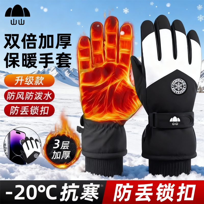 滑雪手套男女情侣冬季触屏防水加绒加厚棉保暖防风户外骑行摩托车
