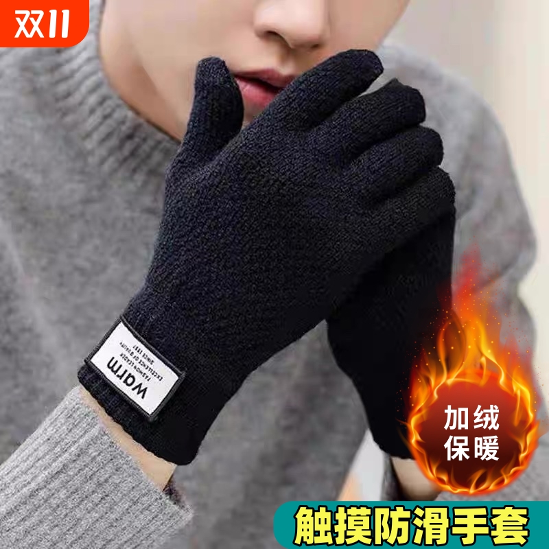 冬天男士防风骑行保暖手套棉防风防寒加绒加厚触屏开车滑雪麂皮绒