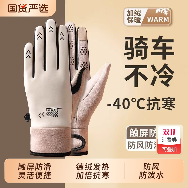 手套女冬季厚加绒骑车电动车防寒防风新款冬天保暖触屏男骑行手套