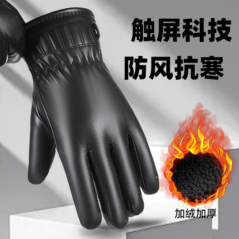 皮手套男士冬季加绒加厚保暖骑行触屏手套开车摩托车女抗寒防滑
