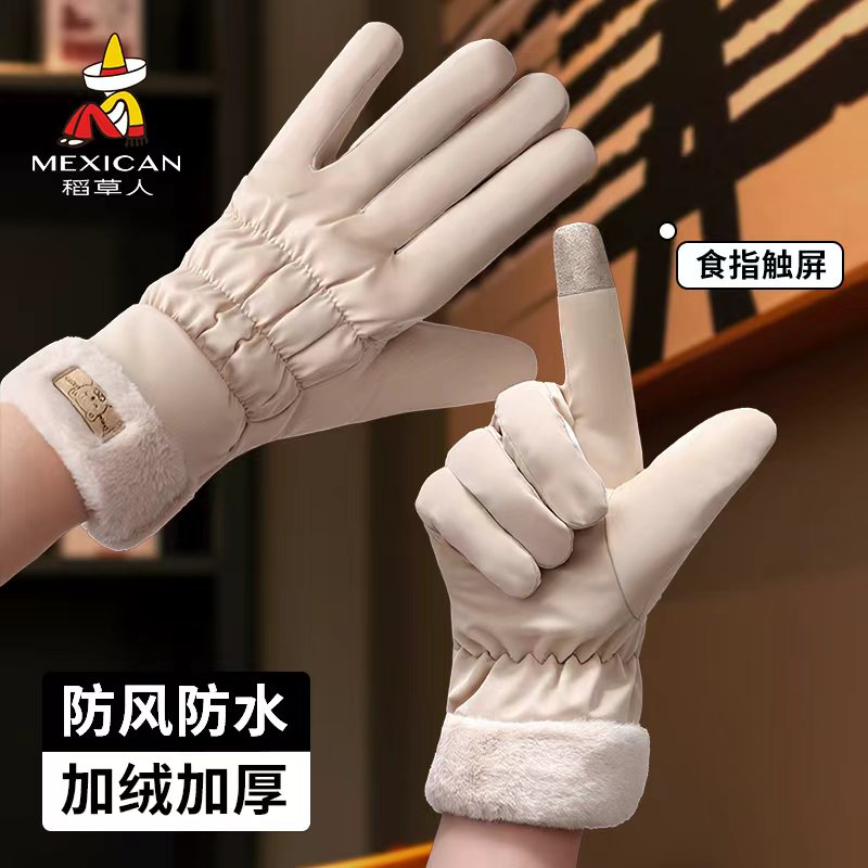 稻草人手套男士冬季保暖加绒加厚电动车骑行触屏防寒防风防水棉女