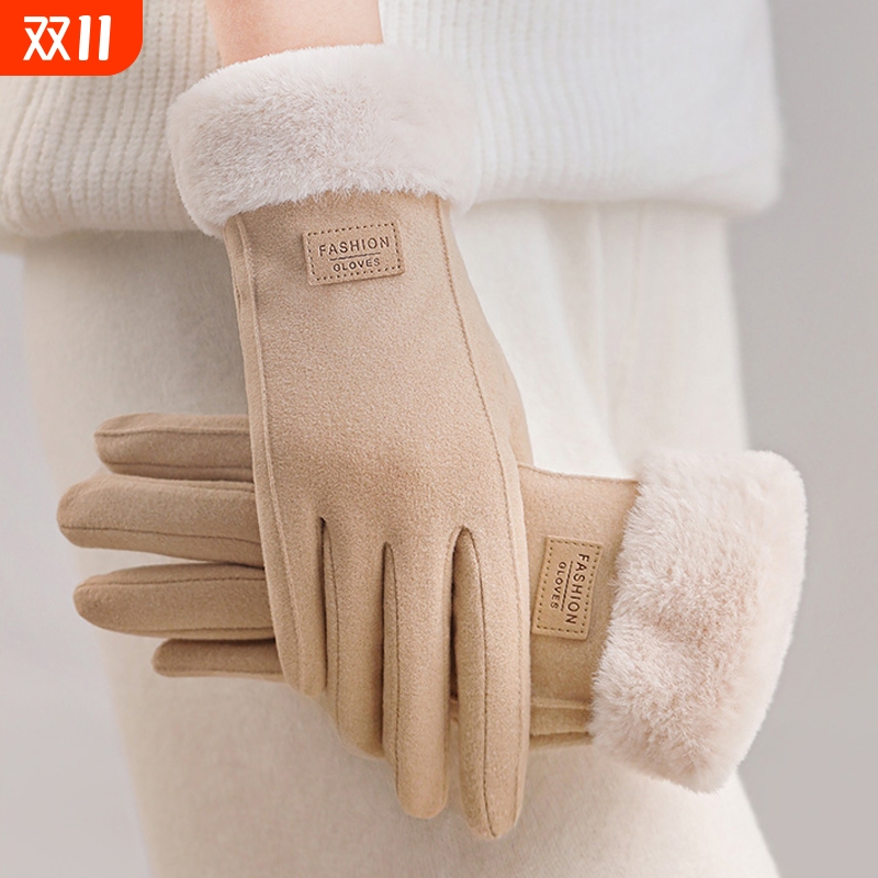 日本手套女冬季骑车可爱保暖可触屏骑行电动车加绒防寒st防水防风