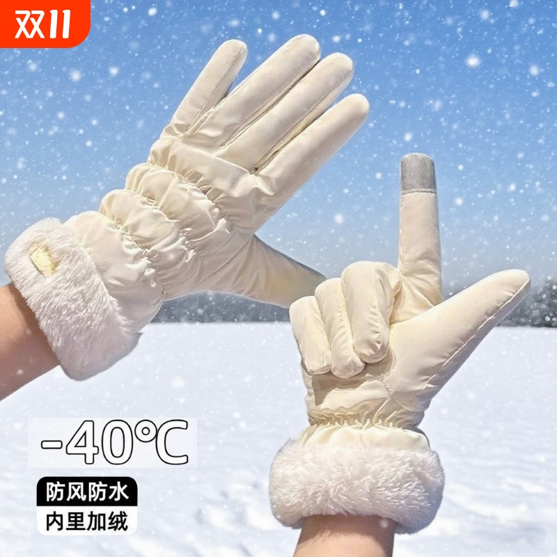 滑雪手套女士冬季可触屏防寒风加绒加厚保暖骑行电动车御寒手套男
