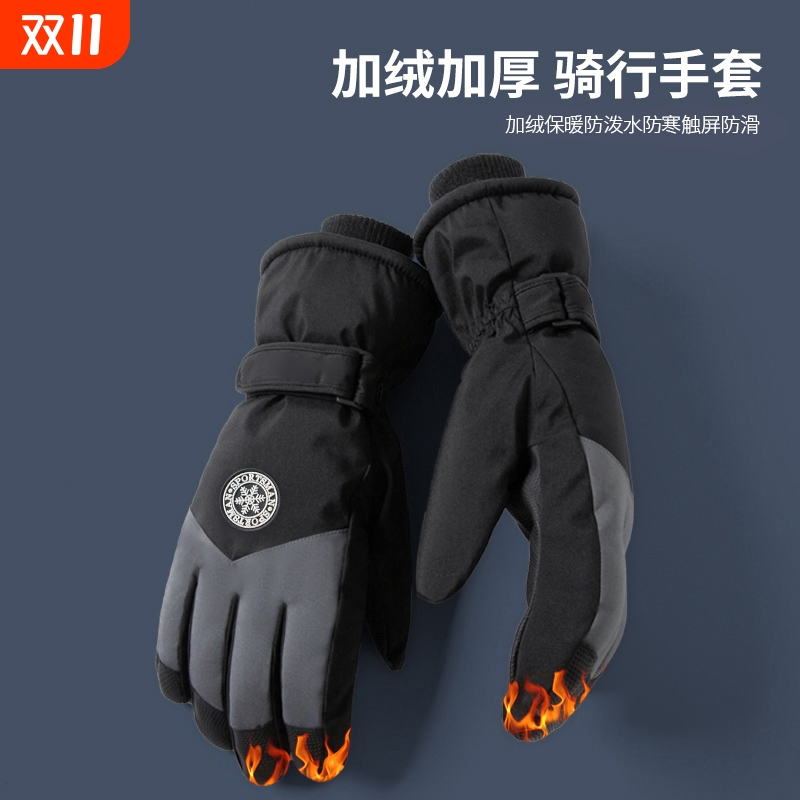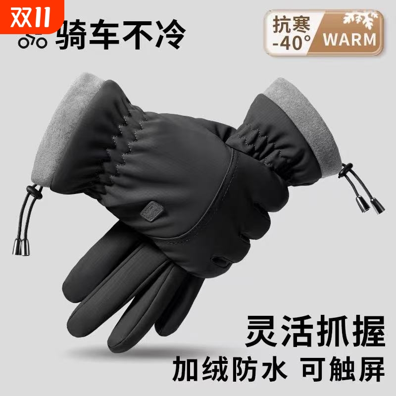 骑行保暖手套男士冬季户外开电动车触屏防寒加绒冬天防风防水手套