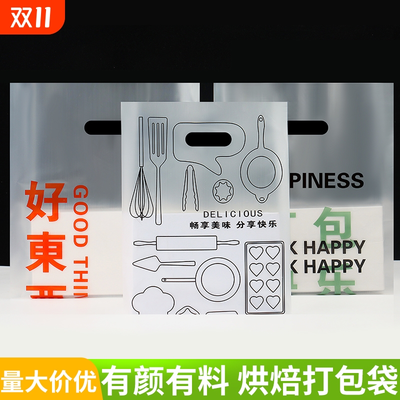 加厚一次性塑料打包袋外卖手提袋食品级蛋糕烘焙店透明包装面包袋