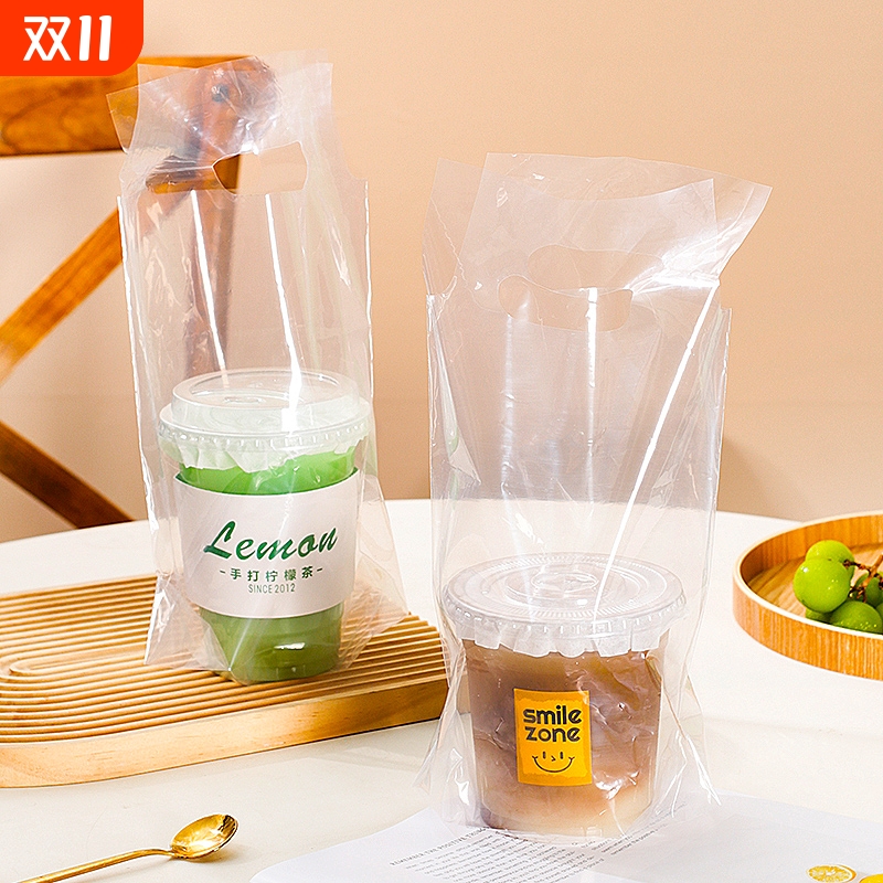 12丝奶茶打包袋高透明外卖咖啡饮品一次性塑料手提包装袋子食品级