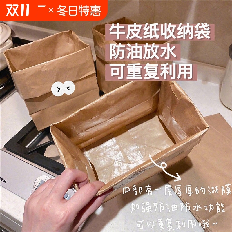 加厚食品级牛皮纸袋包装袋冰箱果蔬收纳袋面包防油打包纸袋子防水