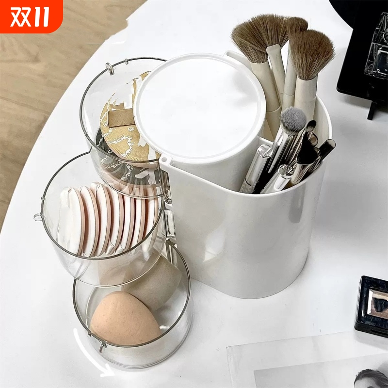粉扑收纳盒旋转防尘梳妆台桌面美妆蛋眉笔架气垫口红化状品置物架