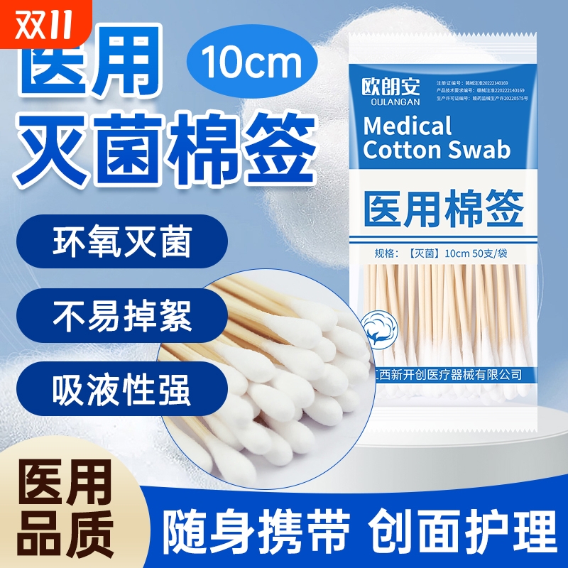 医用棉签无菌家用一次性医药棉棒单头医疗灭菌小棉签脱脂医护美容