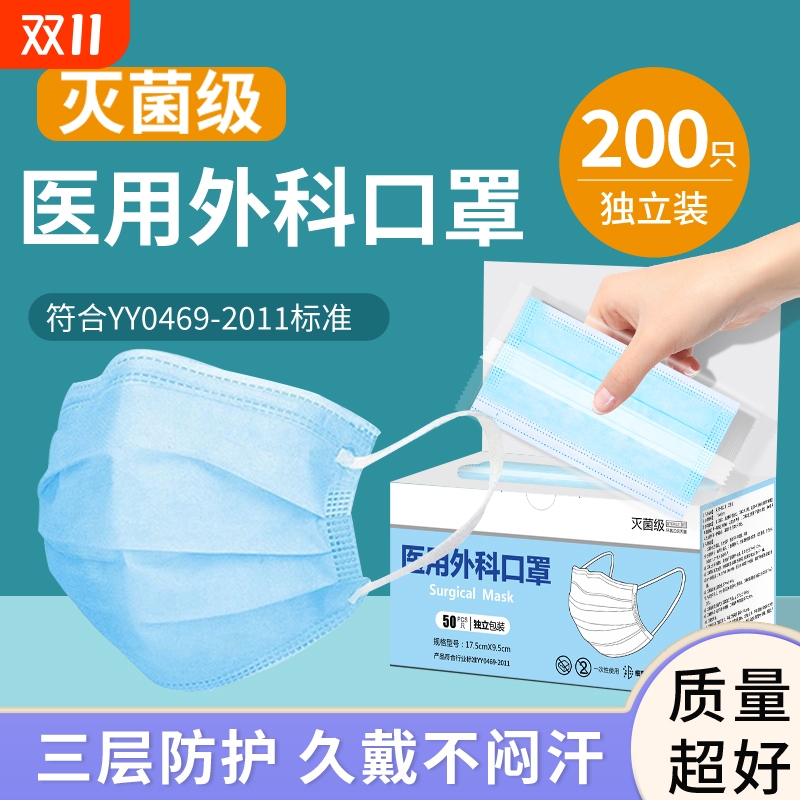 医用外科口罩一次性医疗成人熔喷布正品透气三层医用灭菌蓝白黑色
