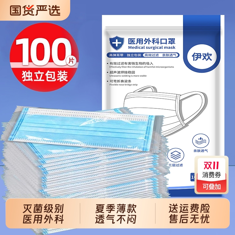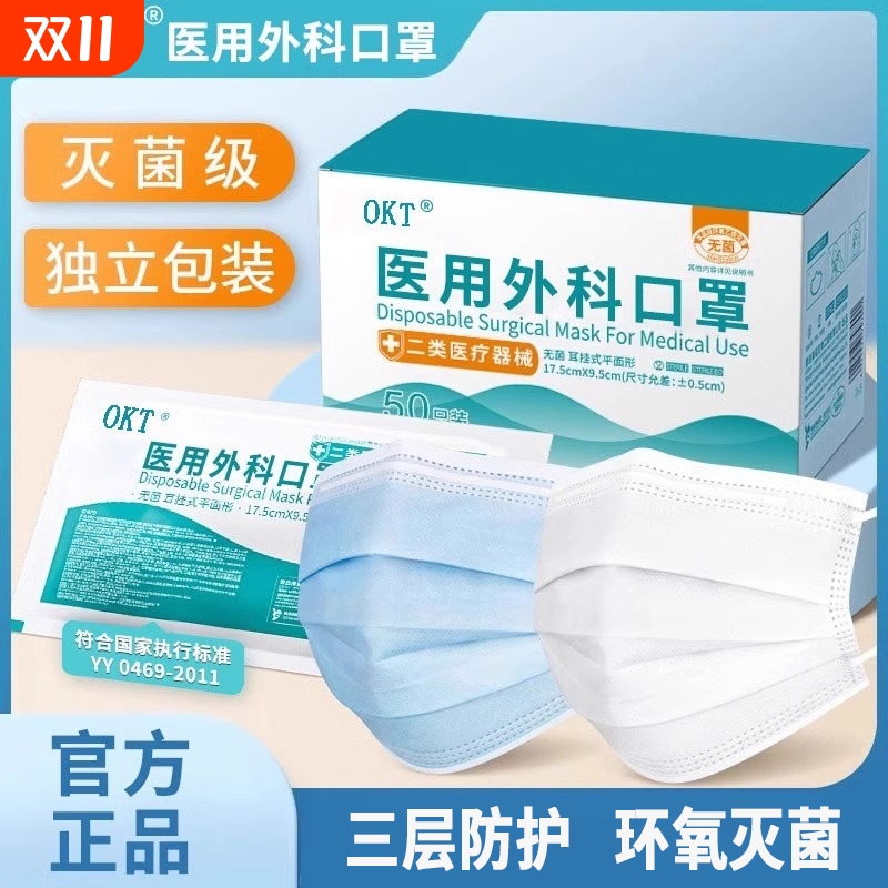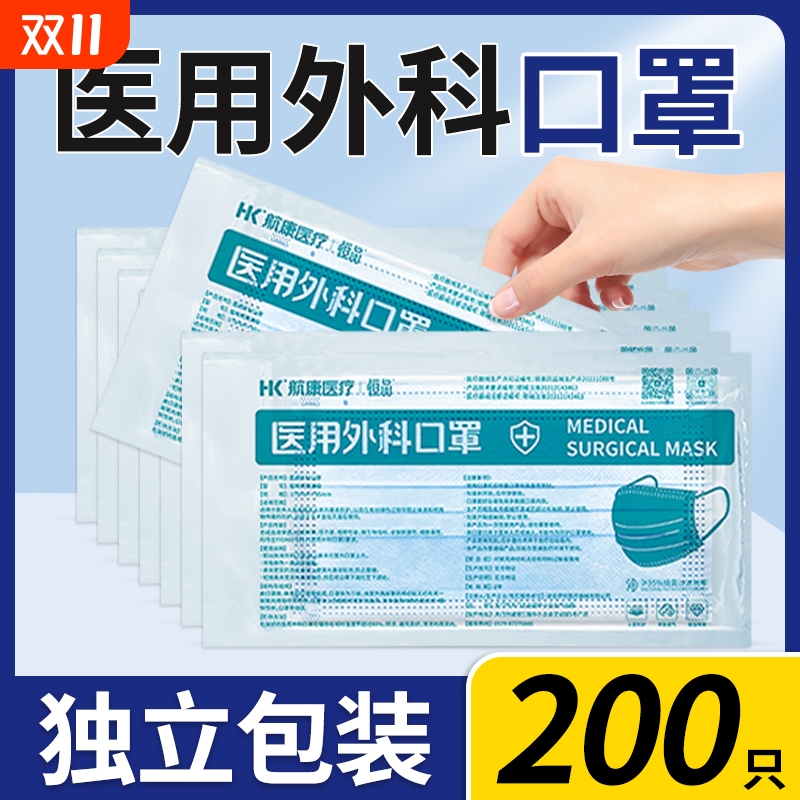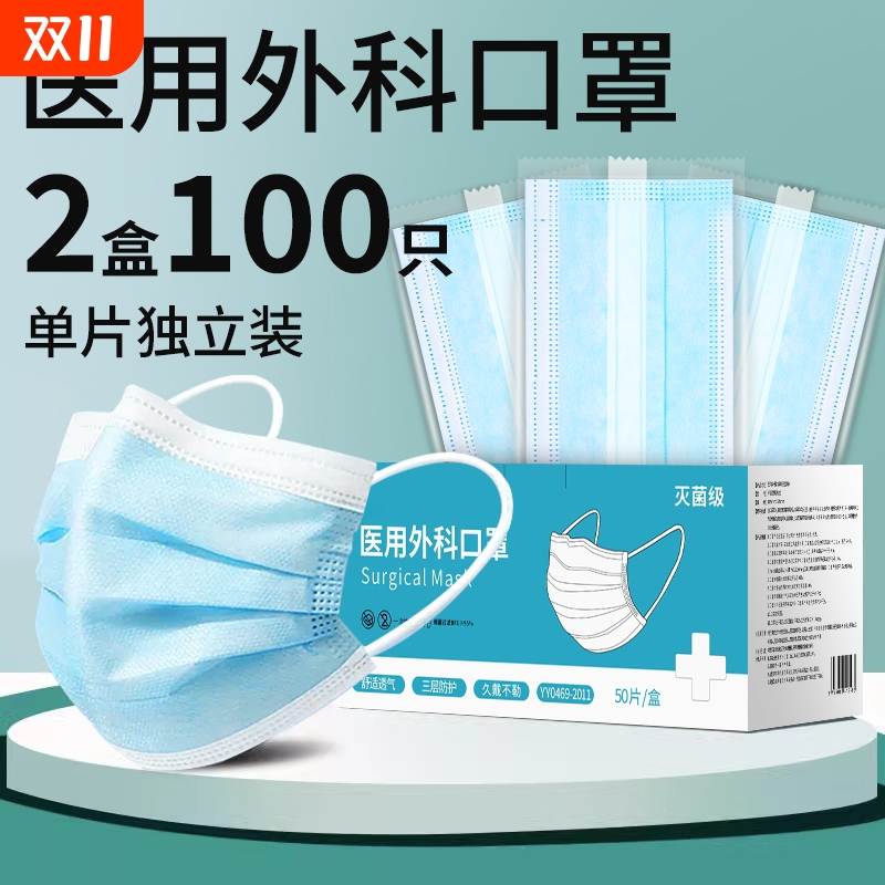 医用外科口罩一次性医疗三层正品蓝白色成人透气单独立包装秋冬