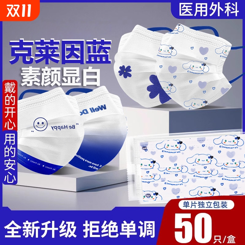 克莱因蓝医用外科口罩一次性三层医疗正品高颜值女男潮款独立包装