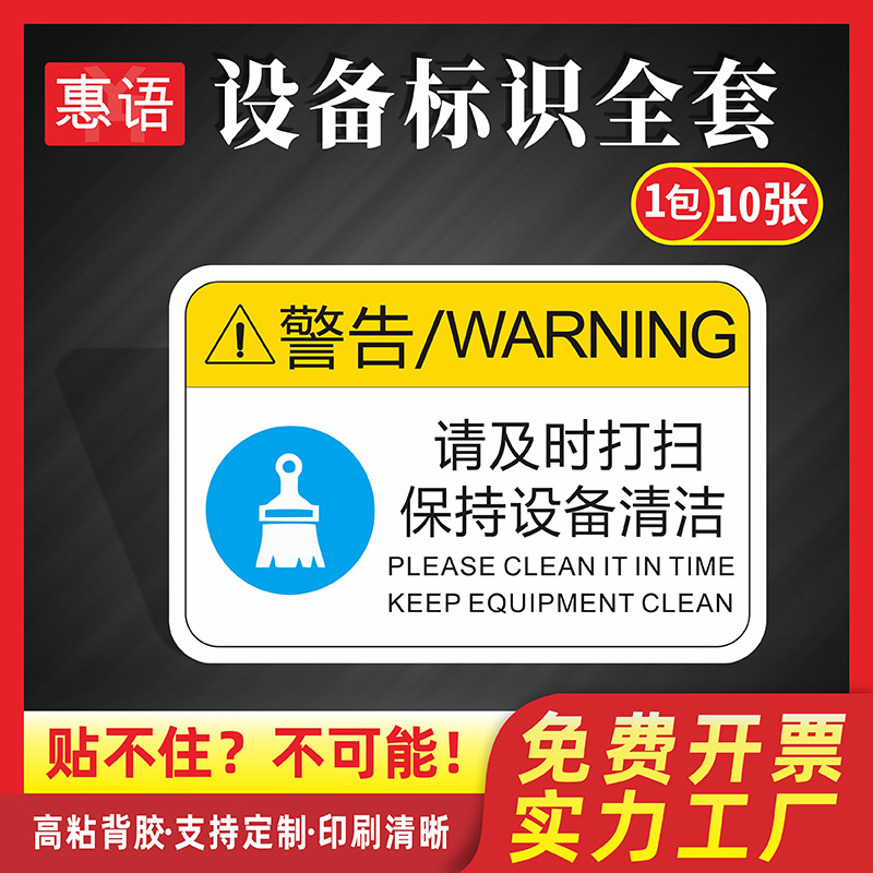请及时打扫保持设备清洁警示贴3MPVC机械设备安全标识当心触电高