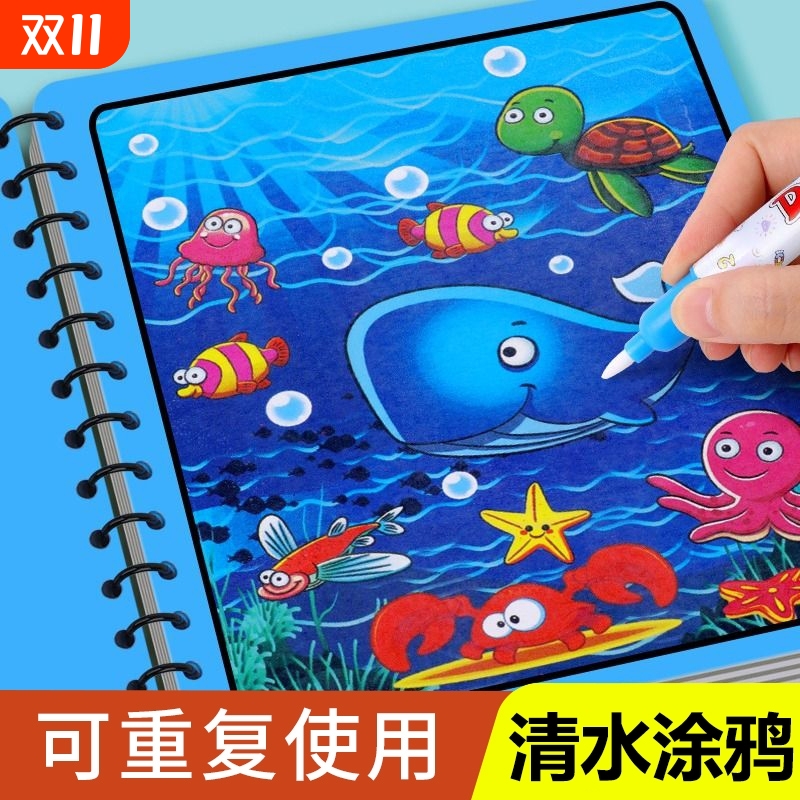 神奇水画本反复涂鸦清水绘画涂色本宝宝益智画画男女孩幼儿园玩具