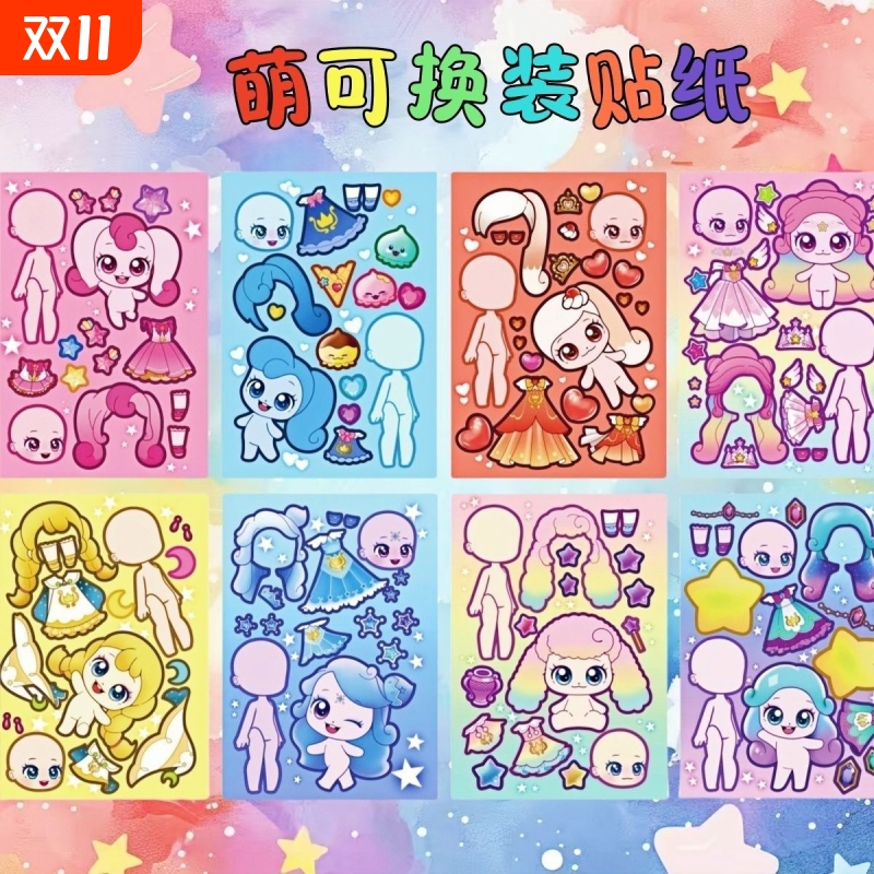 奇妙萌可公主换装贴画儿童玩具女孩高颜值反复贴儿童卡通装扮玩具