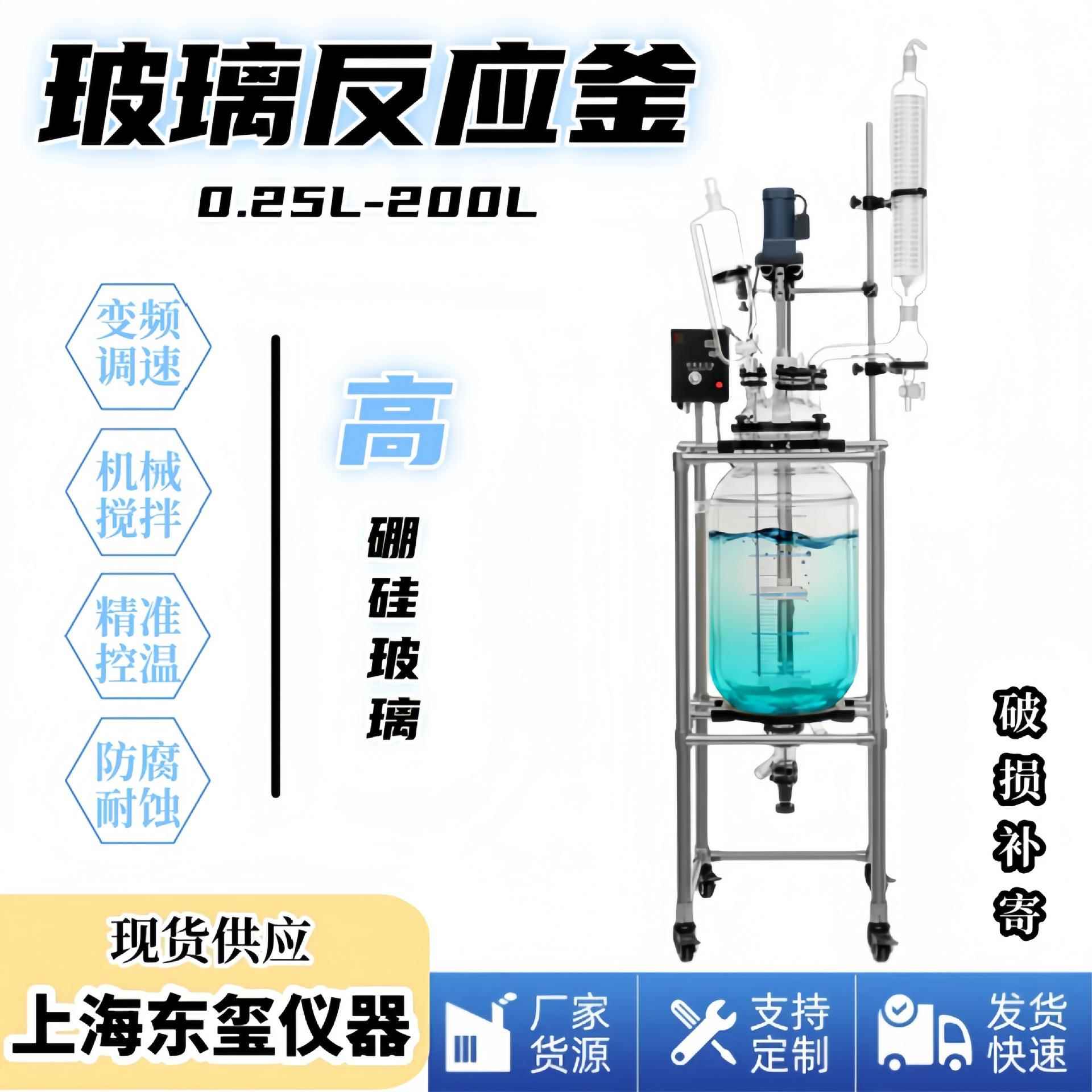 双层玻璃反应釜不锈钢搅拌加热小型高温实验室蒸馏反应器