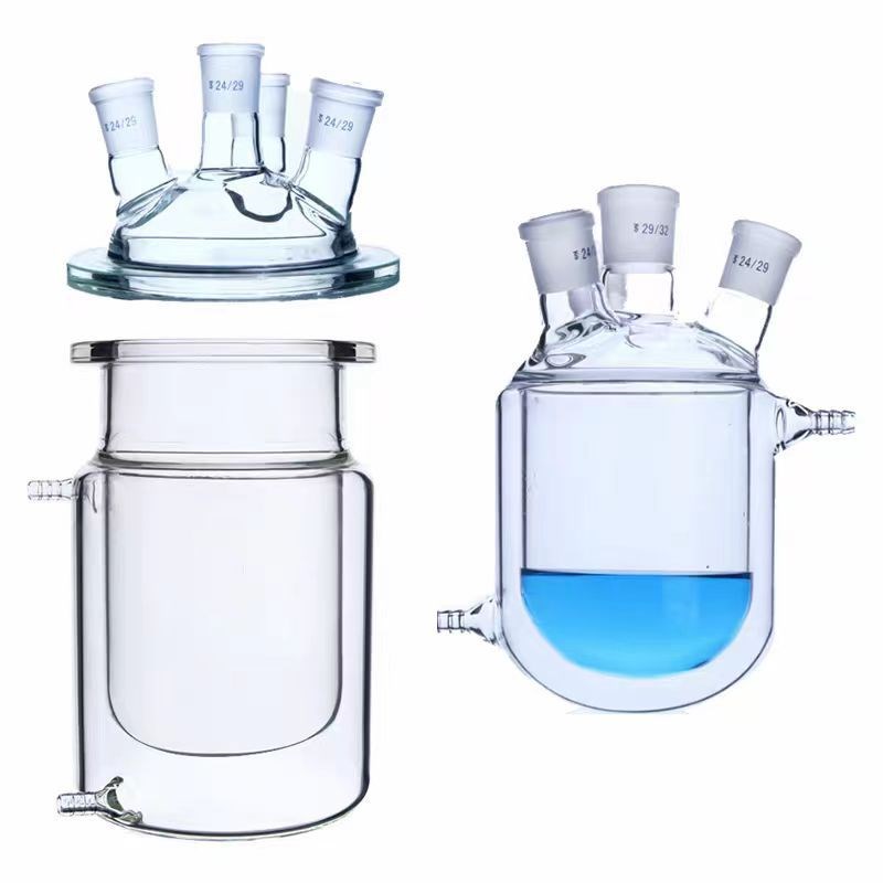 单双层玻璃反应釜配件五六口釜盖搅拌塞桨机械密封四氟放料阀