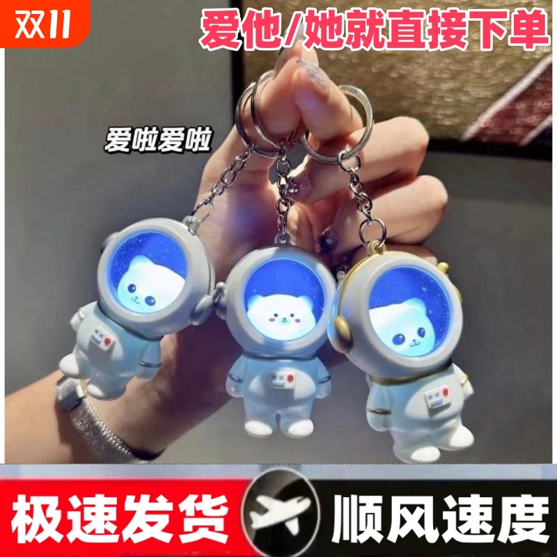 iloveyou发声发光玩偶星空宇航员钥匙扣可爱太空人小熊书包挂