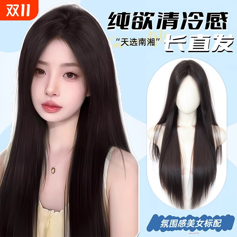 羊毛卷假发女长卷发中分八字刘海水波纹长发秋季薄款仿真人全头套