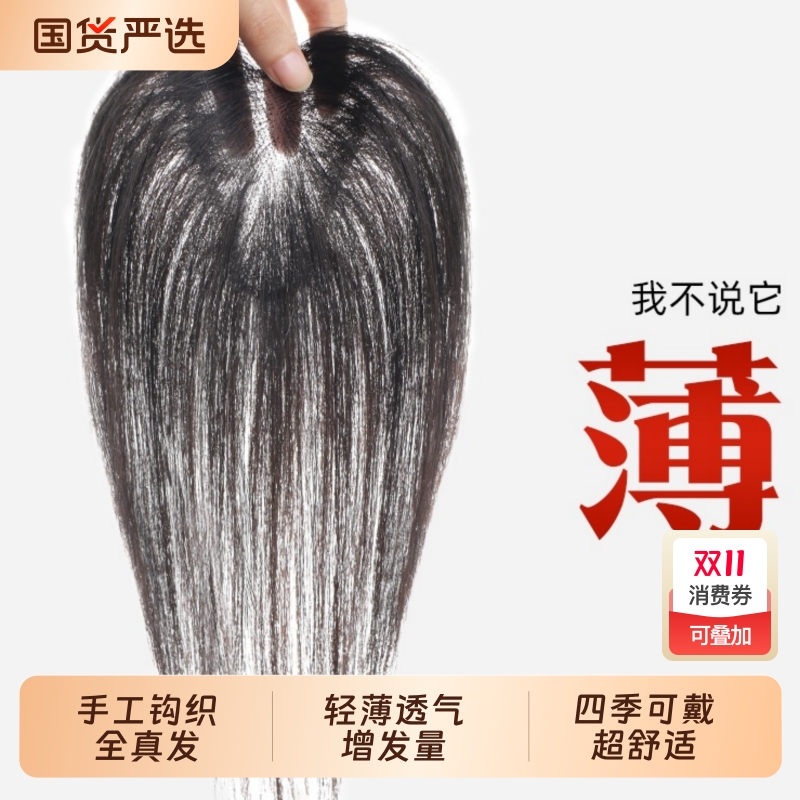 假发女头顶补发片蓬松全真人发遮白发隐形无痕自然手织轻薄假发片
