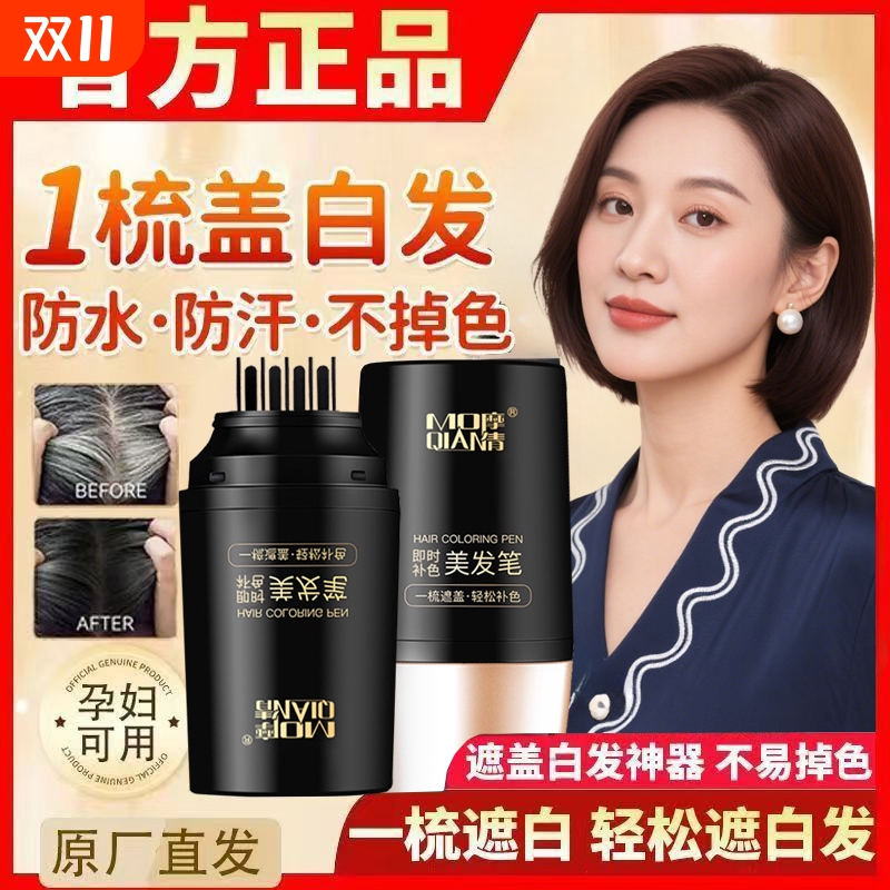 美发棒遮盖白发神器纯植物一次性染发笔不掉色黑发补染发根补色笔