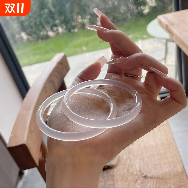 爆款精品平替玉髓手镯女晴水白玉圆条正条手镯轻奢手链送老婆女友