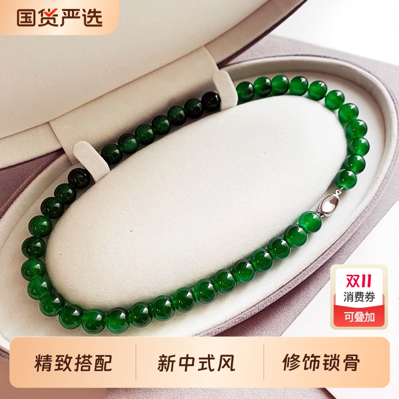 绿色玉髓串珠秋冬毛衣链玛瑙项链百搭高级感小众女款新中式锁骨链