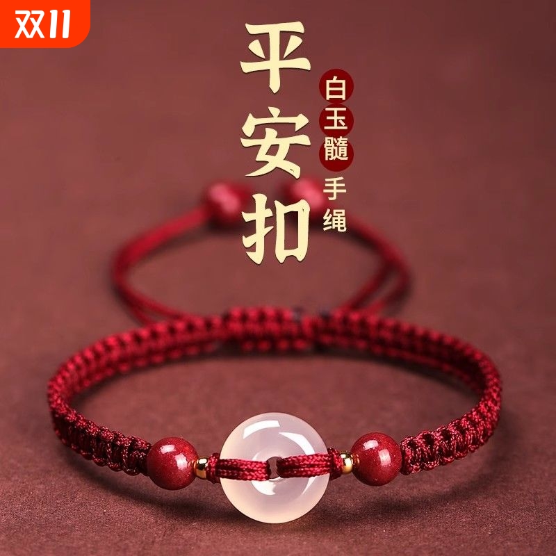 泛洛轻朱砂玉髓平安扣手绳本命年红绳金刚结手链国风送朋友